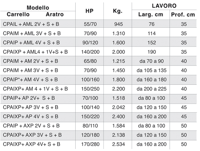 *se trainato da trattrice superiore a 100 HP oltre 60 q.li di peso si consiglia il carrello CPAIXP.