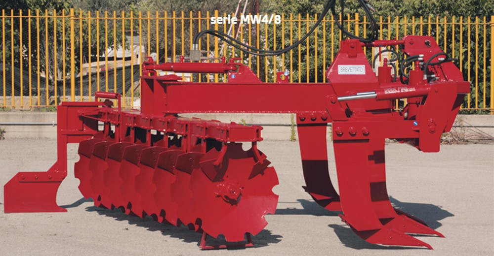 La profondità del ripuntatore viene stabilita mediante il sollevatore del trattore, mentre la profondità dei dischi si registra tramite un braccio meccanico posto all’altezza del terzo punto. La serie MW 4/10 ha una larghezza di lavoro di m. 3,20, gli utensili ripuntatori riescono a decompattare fino ad una profondità di cm. 50, mentre la profondità massima dei dischi è di cm. 27. Questa soluzione consente di rigenerare il terreno dissodando sia la suola di aratura che gli strati compattati durante la semina e le altre lavorazioni invernali.